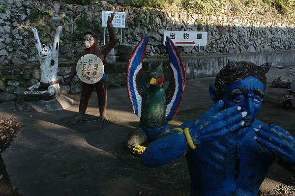 桃太郎や鬼たちの人形から醸し出される独特の雰囲気は、まさしく浅野祥雲作品のそれ。なかなか強引な桃太郎伝説の由来、眉ツバぽたぽたの宝物殿など、見どころ・笑いどころ・ツッコミどころに事欠かない愛すべき神社だ。